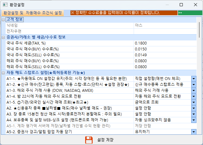 5.1. 국내 주식, 해외주식 수수료율 및 세금 비율 설정¶
