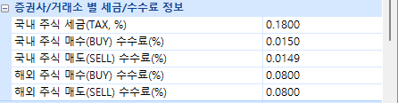 5.1. 국내 주식, 해외주식 수수료율 및 세금 비율 설정