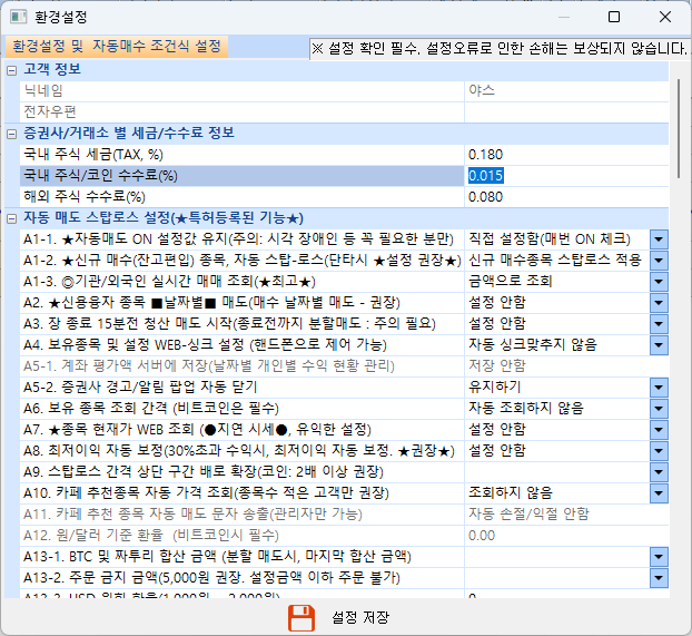하지만, 세금 및 수수료 율은 정확하게 입력해야, 수익률이 정확하게 계산됩니다.